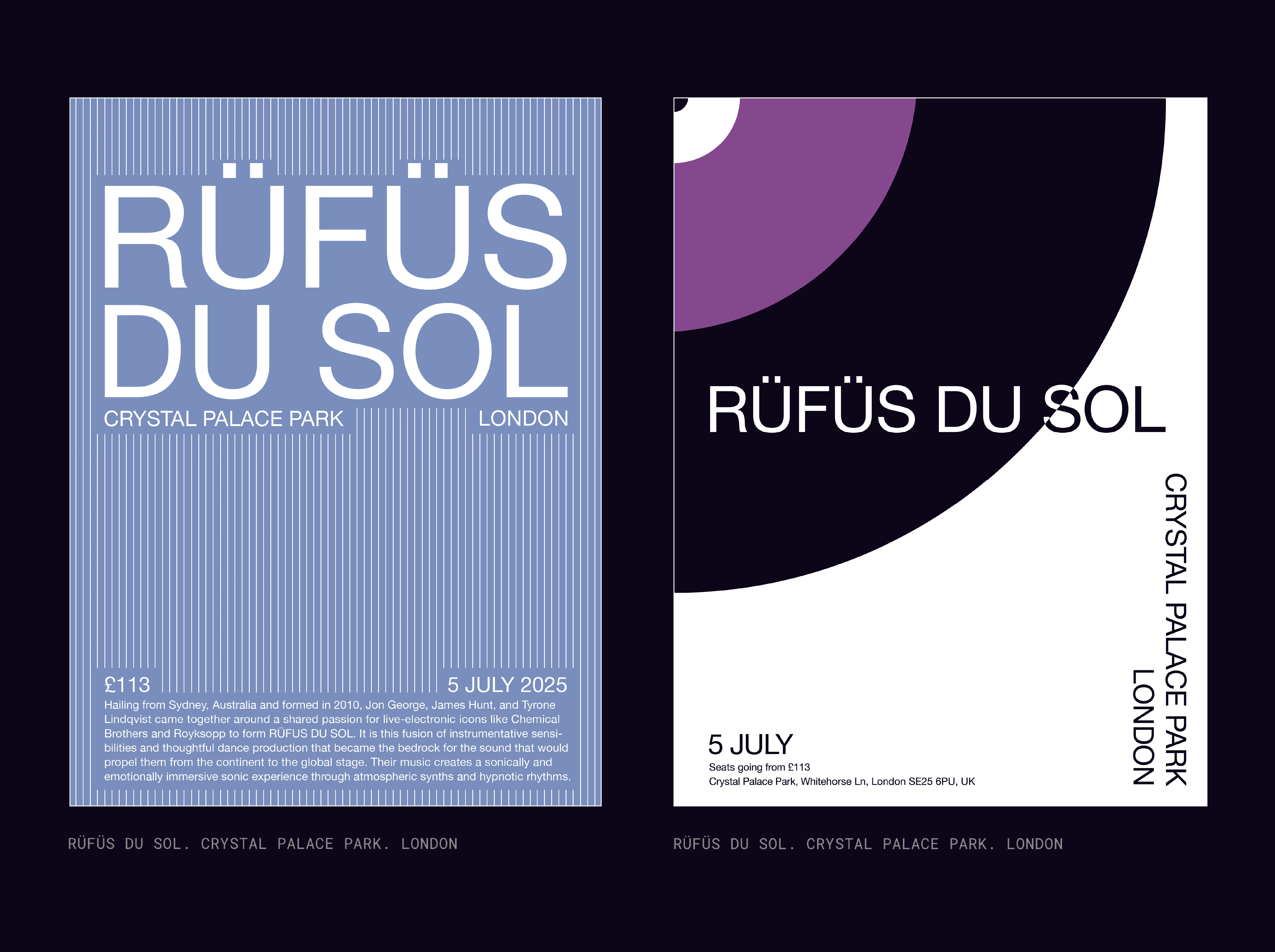 these are two concept posters in the swiss style that I made for a RÜfüs du sol concert—I was given this assignment for a typography class, but it ended up being some of my favorite work that I've done!